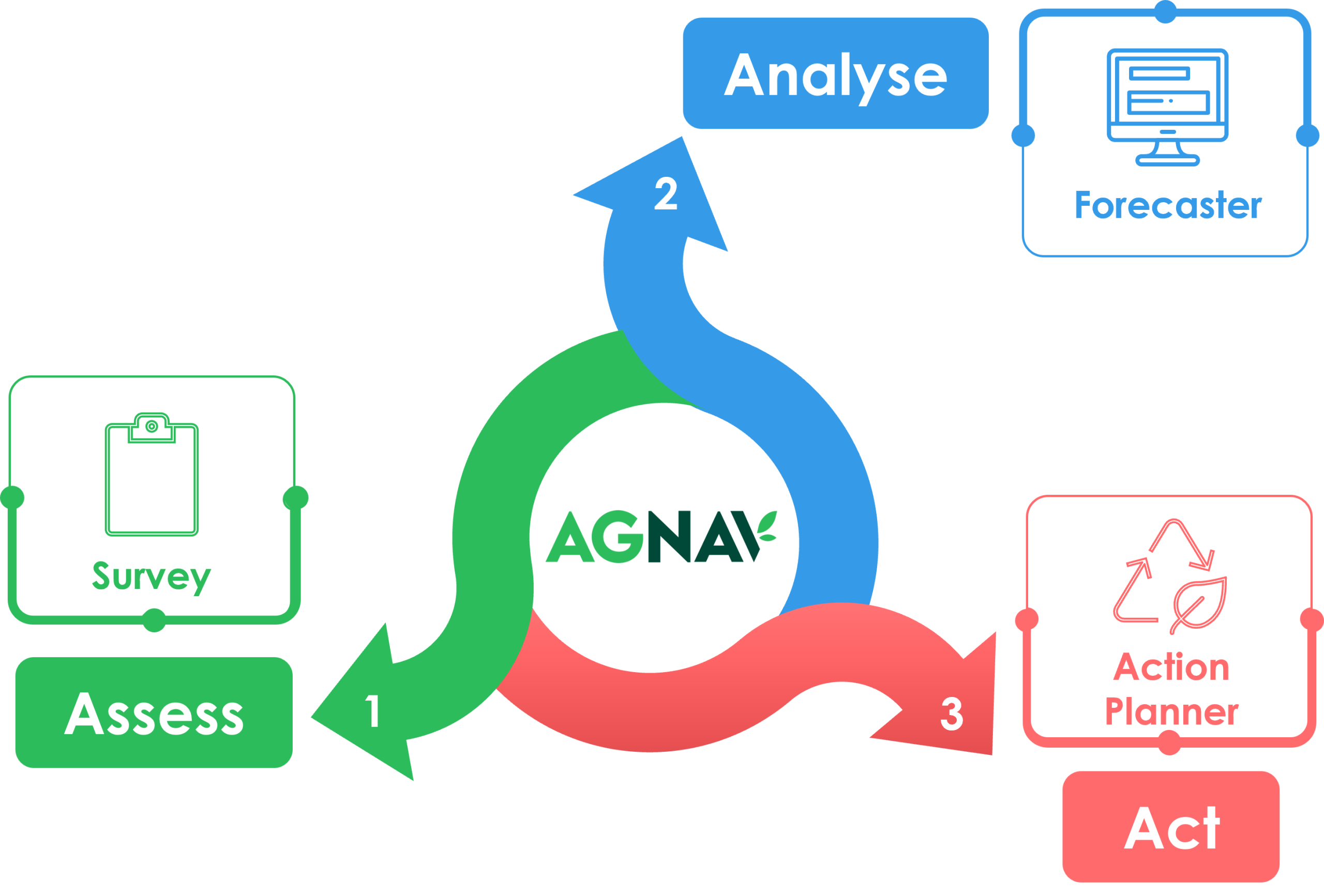 The AgNav Forecaster is a core feature of the AgNav platform, and is currently available for dairy and beef enterprises. Farmers, or their advisors, can use the forecaster to analyse how changes in farming practices and management can impact each sustainability metric.
